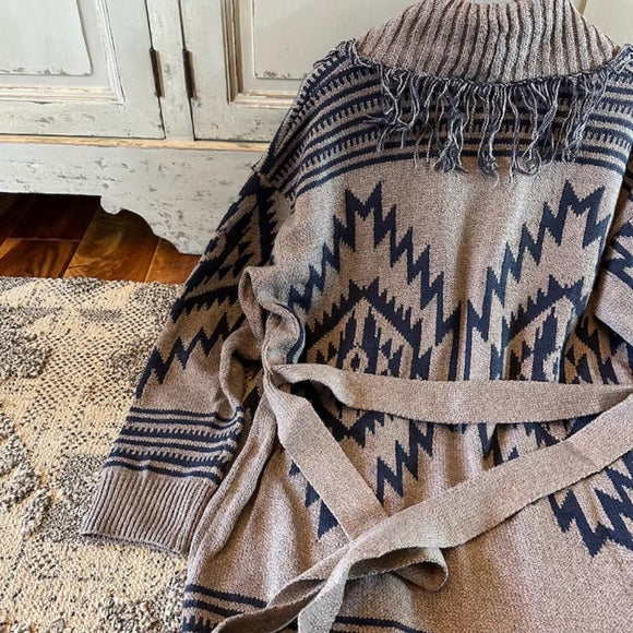Featuring a Cozy Native Southwest Geometric Aztec Print, Belted Waist, and Substantial Knitted Fabric.