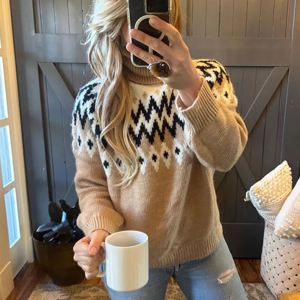 + Thick Soft Knit with a faire isle inlay pattern