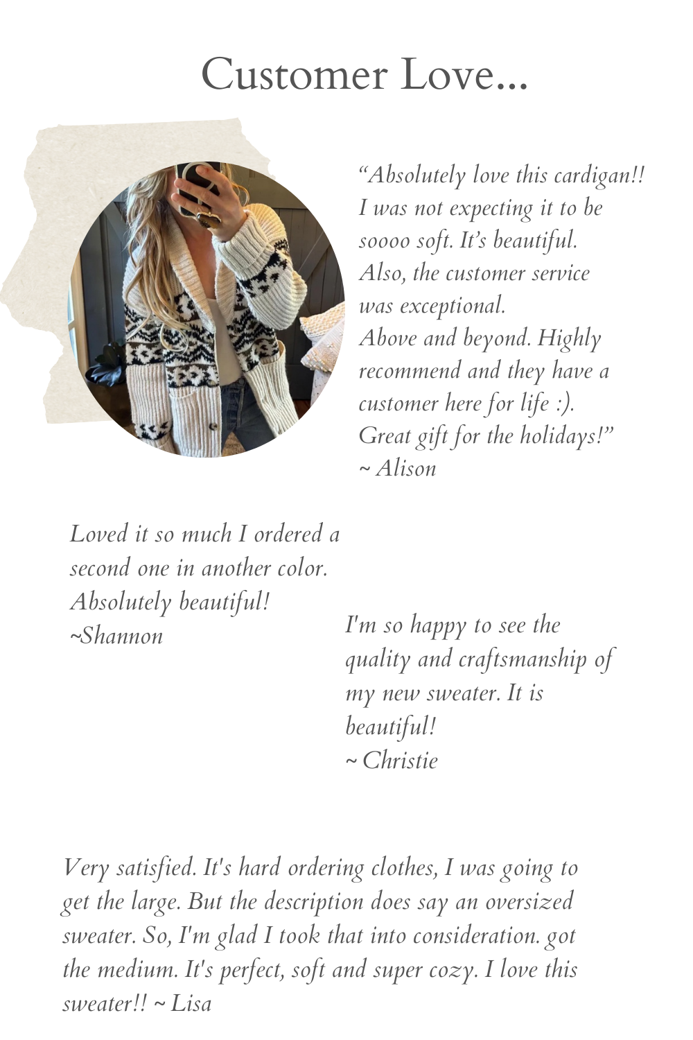 Fit Guide: Cardigan is designed to be oversized cozy fit with long drop sleeves. We recommend ordering your normal size.